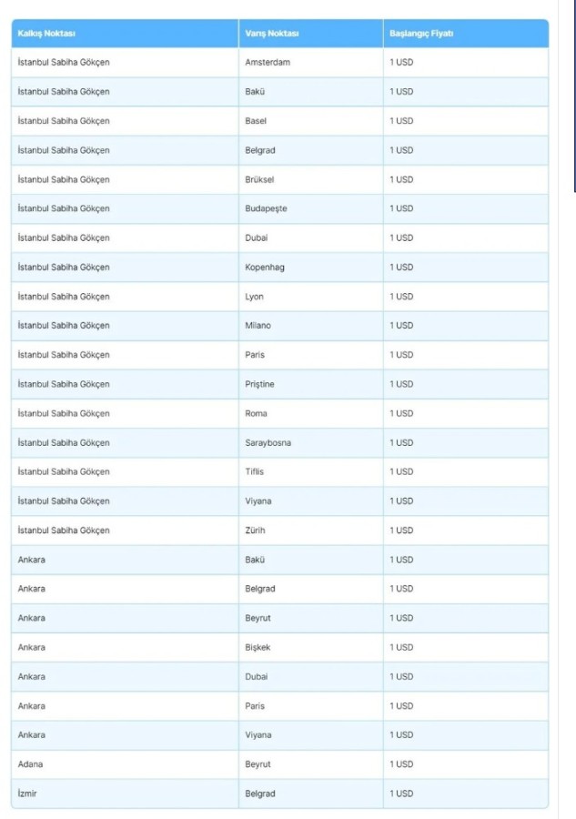 Kampanyalı biletler, Yurt dışına 1 dolar artı vergiler, yurt dışından Türkiye'ye uçuşlar içinse 1 euro artı vergilerden başlayan fiyatlarla satışa sunuldu.