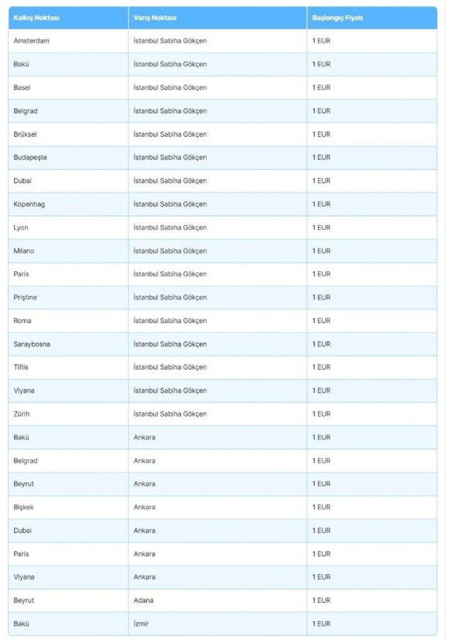 Türkiye'den yurt dışına (Kuzey Kıbrıs hariç) ve yurt dışından Türkiye'ye direkt uçuşlar kampanya kapsamında.