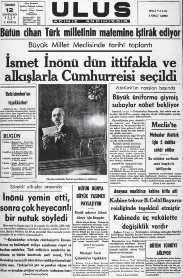 Atatürk'ün ebediyete intikalinin ardından İsmet İnönü'nün Cumhurbaşkanı seçilmesi gazetelere böyle yansıdı.