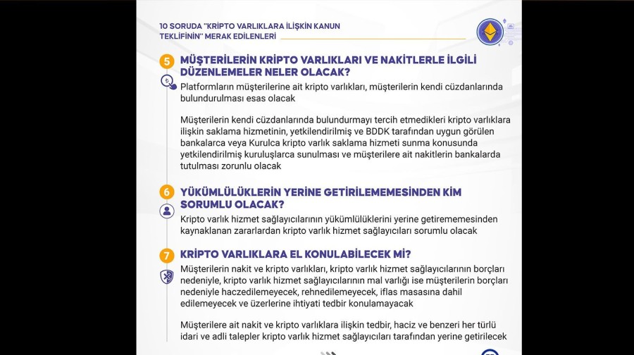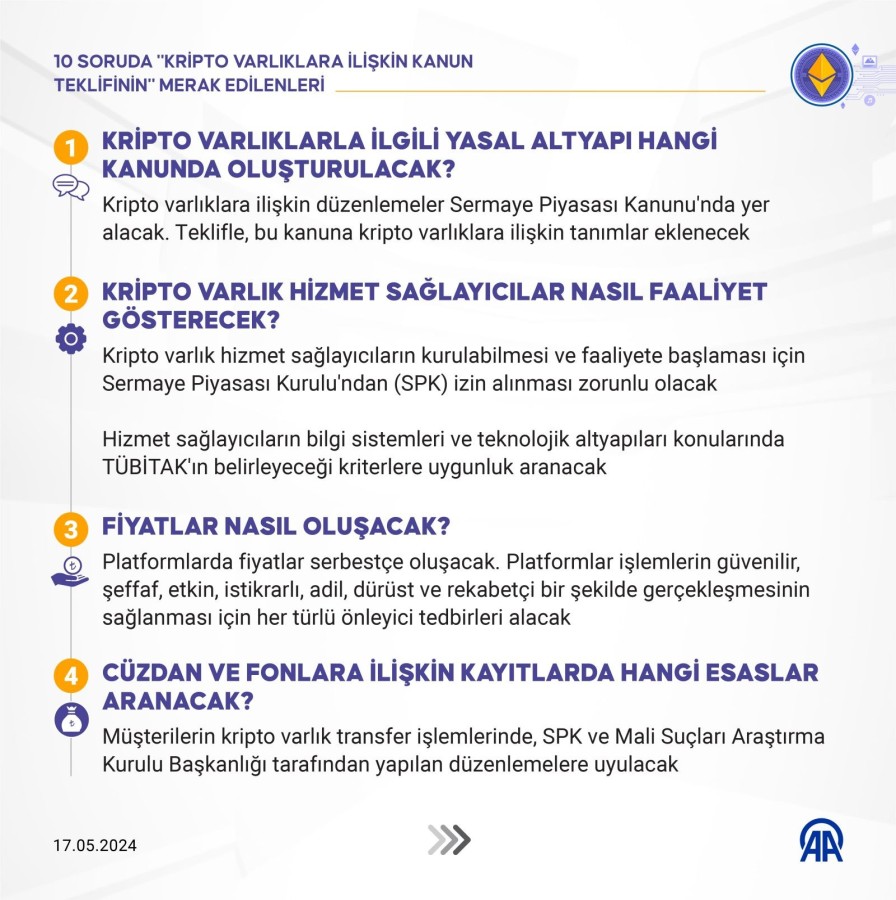 Kripto varlıklara ilişkin düzenlemeleri içeren kanun teklifi, bu alandaki dünya uygulamalarının incelenmesinin ardından hazırlandı. Üzerinde uzun süredir çalışılan teklif, kripto varlıklara, kripto varlık hizmet sağlayıcılarına ilişkin hükümlerin yanı sıra müşterilerin risklere karşı korunmasına yönelik düzenlemeler içeriyor.