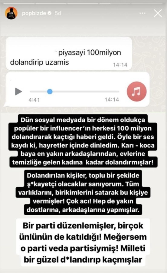 Geçtiğimiz saatlerde Var Böyle Tipler adlı Instagram hesapları kapanan çifte pazartesiden bu yana ulaşılamadığı da iddialar arasında.