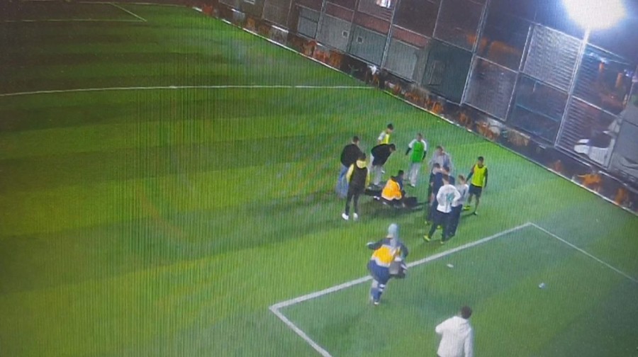 Aksaray'da, halı saha maçında kalp krizi geçiren 18 yaşındaki Berat Karaaslan, hayatını kaybetti. O anlar güvenlik kamerasına anbean yansıdı.
