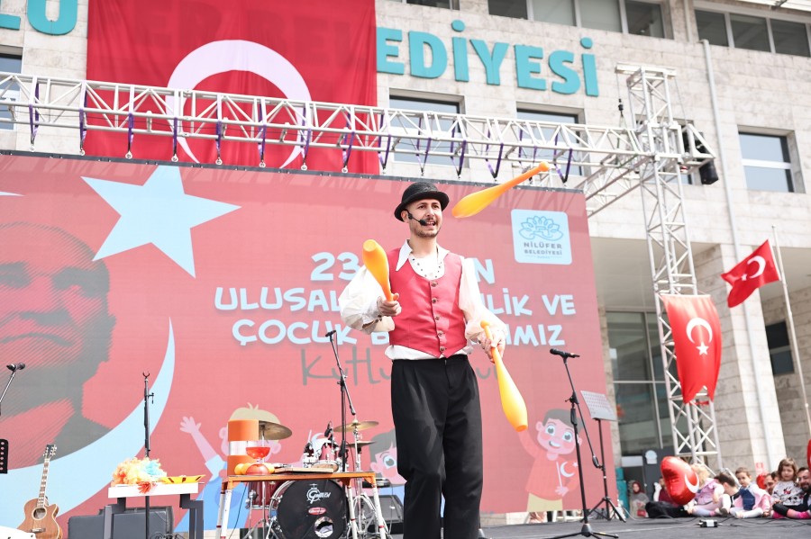 Bursa Nilüfer Belediyesi'nin düzenlediği şenlikte, 23 Nisan Ulusal Egemenlik ve Çocuk Bayramı coşkuyla kutlandı. Çocukların doyasıya eğlendiği program öncesinde konuşan Nilüfer Belediye Başkanı Şadi Özdemir, "Cumhuriyet'imize ve egemenliğimize her zaman sahip çıkacağız" dedi.