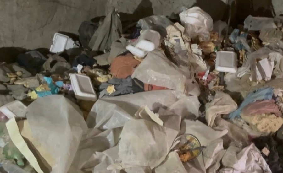 Yığınla yemek atığı ve dışkının bulunduğu odayı saran ağır koku, içeri girer girmez fark ediliyor.