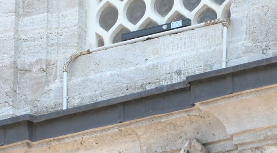 Dr. Öğretim Üyesi Buket Akçay Güven, "Caminin dış cephesinde pencerelerin önünde aydınlatma amaçlı U biçiminde plastik borular geçirilmiş olduğunu görüyoruz. Muhtemelen bunların içerisinden o aydınlatma için elektrik borularını geçirmişler. Burada yani çok açıkça aykırı bir durum var. Bunu hani biz korumayla ilgili çalışan uzmanlar, arkeologlar, sanat tarihçilerinin de gördüğü ayrıca sokaktan geçen insanın da fark edeceği şekilde hem estetik yönden aykırı bir durum var hem de müdahale açısından bir hata var. Biz genel olarak tarihi yapıların aydınlatılmasında yapıya minimum müdahale ilkesini benimsiyoruz. Yani, hem yapının dış görünümüne estetik durumuna minimum bir etki olsun, yaptığımız eklemeler mümkün olduğunca görünmesin istiyoruz ama burada bariz bir şekilde görünür. Yapının kimliğiyle malzemesiyle de aykırı plastik borular geçirilmiş" dedi.