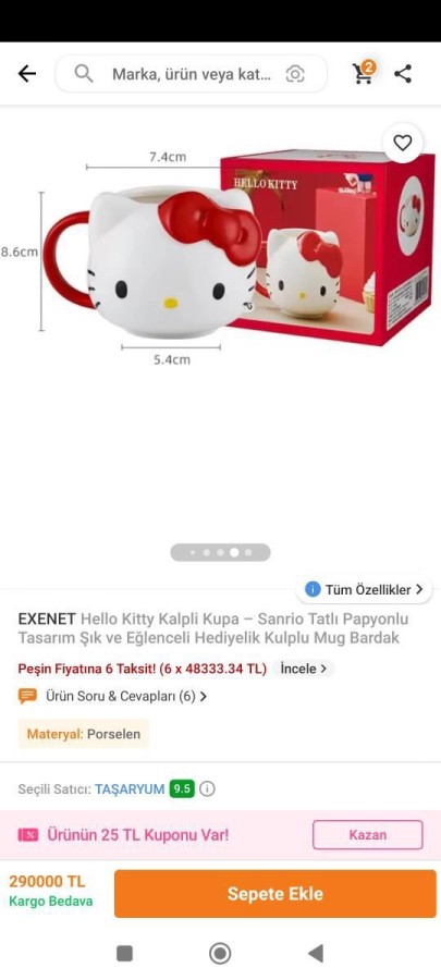 Trendyol'da bir satıcı, bir bardağı tam 290 bin TL fiyat etiketiyle satışa sundu. İlanı görenler büyük şaşkınlık yaşadı.