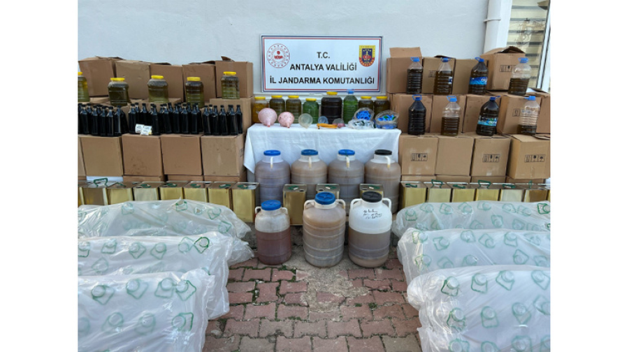 Antalya İl Jandarma Komutanlığı KOM Şube Müdürlüğü ve Kepez Jandarma Karakol Komutanlığı ekipleri, Kepez ilçesinde 6 şüpheli şahsın, gümrük işlemine tabi tutmaksızın yurtdışından getirmiş oldukları pamuk ve soya yağlarını ikametlerinin deposunda sakladıkları, bu yağların içerisine aroma ve renklendirici endüstriyel boya karıştırarak sahte zeytinyağı üreterek piyasaya sürdüğü ihbarı üzerine harekete geçti.