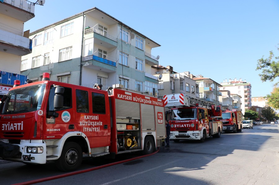 Kayseri'de 3 katlı binanın en üst katındaki dairede çıkan yangın, itfaiye ekiplerince 1 saatte kontrol altına alınarak söndürüldü.