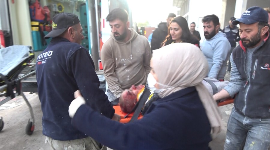Aksaray'da yapımı devam eden 7 katlı inşaattın 3'üncü katından merdiven boşluğuna düşen işçi Abdullah Karaca ağır yaralandı.