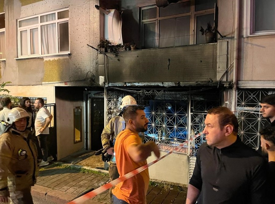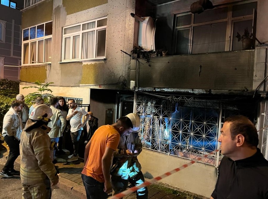Yangının nedeni henüz bilinmezken yabancı uyruklu kişilerin yaşadığı daire adeta küle döndü.