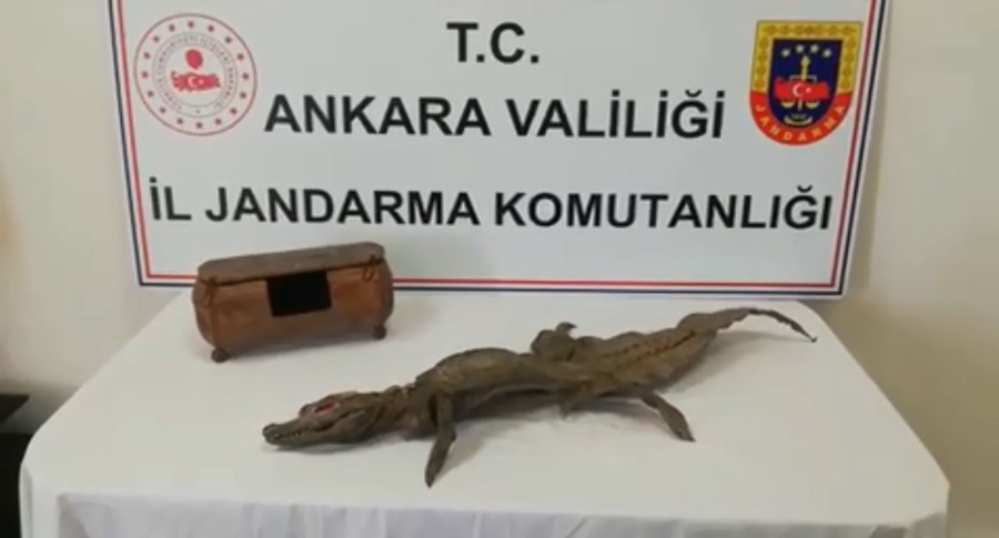 Operasyon düzenleyen jandarma, şüphelileri gözaltına aldı. Şüphelilerin üzerinde yapılan aramada, Antik Mısır dönemine ait timsah derisi üzerinde ikon ve figürler ile mühür bulunan el yazması eser ile yine üzerine çeşitli figürler ve objeler bulunan, timsah objesinin muhafaza edildiği altın işlemeli deri kutu ele geçirildi.