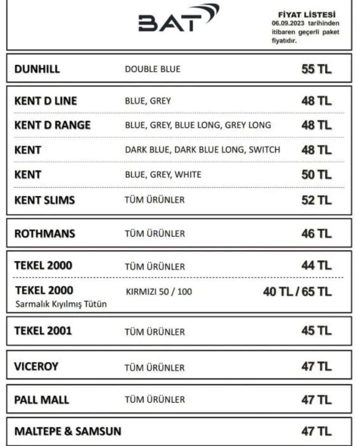 Dün de RT, BAT ve TT grubu sigara markalarına da zam geldi.