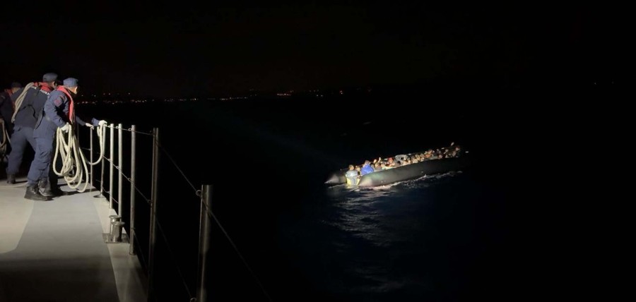 Ekipler, Sahil Güvenlik Mobil Radarı tarafından tespit edilen lastik botta bulunan 32'si çocuk 54 kaçak göçmeni yakaladı.