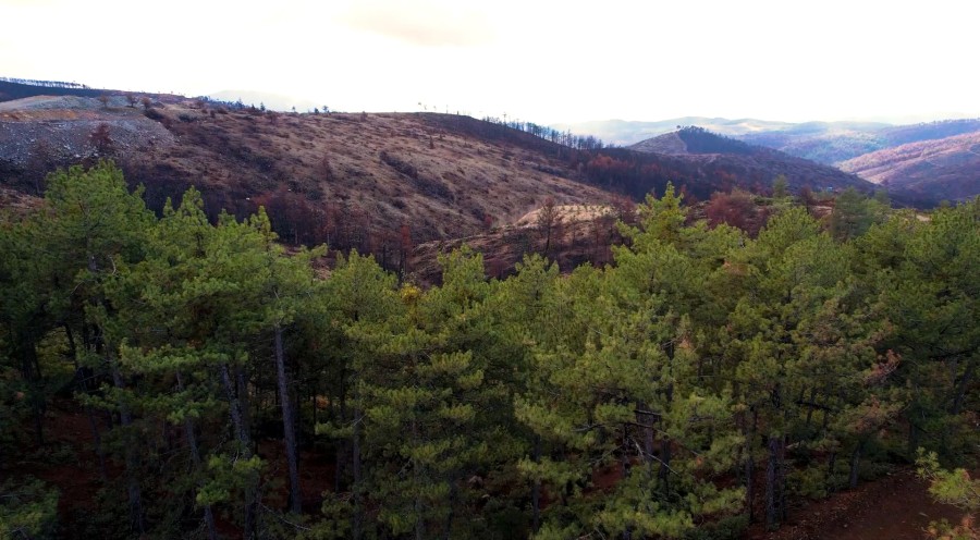 Bursa'da yaz ayında çıkan orman yangınlarında 953 hektarlık alan kül oldu. Bursa Orman Bölge Müdürlüğü ekipleri hasar tespit çalışmalarının ardından bir yandan yanmış ağaçları kaldırıyor, bir yandan da 300 bin fidanla bölgenin yeniden yeşertilmesi için çalışmalarını sürdürüyor. Yangından etkilenen bölgede ekiplerinin çalışmaları ise havadan görüntülendi.