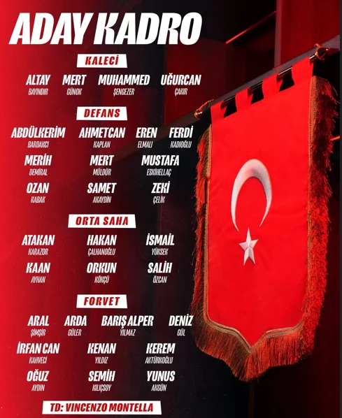Teknik direktör Vincenzo Montella'nın aday kadrosunda yer alan isimler şöyle: