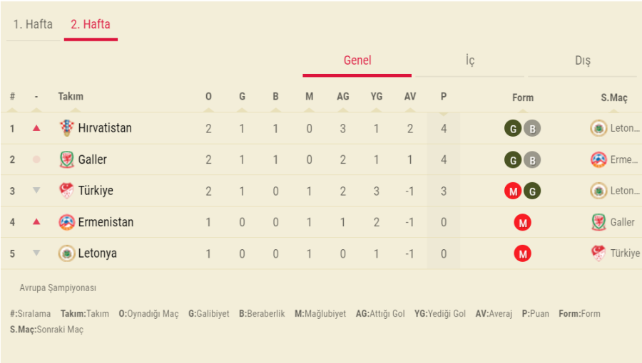 Ay-yıldızlılar için haziran fikstürü artık 'ya tamam ya devam' karakterine büründü. Milliler, 16 Haziran'da Letonya'ya konuk olacak, 19 Haziran'da ise Galler'i ağırlayacak. Hırvatistan ve Galler'in, grubun sıra takımları Ermenistan ve Letonya'ya kaybetmeyeceğini varsayarsak Türkiye, Galler deplasmanında yenilmesi halinde rakibinin dört puan gerisine düşecek ve ipleri rakibine teslim edecek. İki maçımızı da kazanıp Galler'i sıkıştırmalıyız.