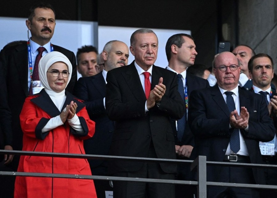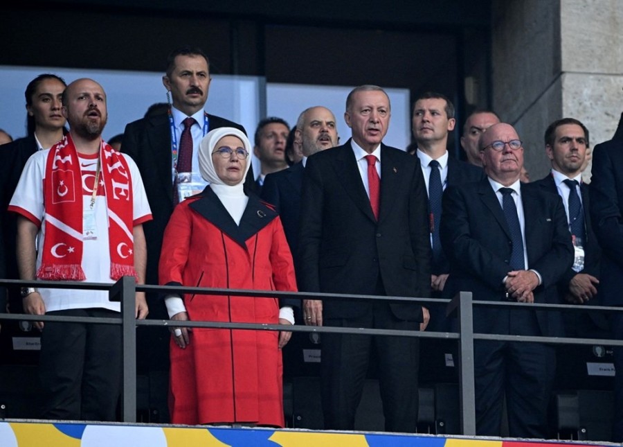 Cumhurbaşkanı Recep Tayyip Erdoğan ve eşi Emine Erdoğan da Berlin Olimpiyat Stadyumu'nda karşılaşmayı takip etti.