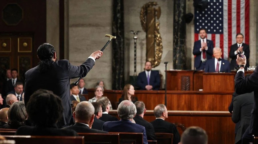 ABD Başkanı Trump'ın konuşmasının başında Temsilciler Meclisi salonunda gerginlik oldu. Demokrat Temsilciler Meclisi Üyesi Green, Meclis Başkanı Mike Johnson'ın uyarılarına rağmen Trump'ın konuşmasını bölmeye devam etmesi üzerine güvenlik görevlileri tarafından salondan çıkarıldı. Bu esnada Demokrat meclis üyeleri Trump'ı yuhalarken, Cumhuriyetçiler ise "ABD" sloganları attı.