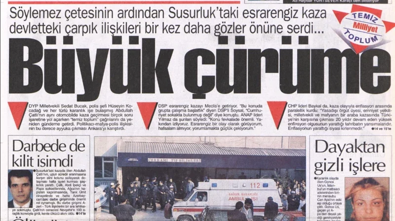 Susurluk kazasıyla devlet-mafya-siyaset ilişkileri tartışma konusu oldu.