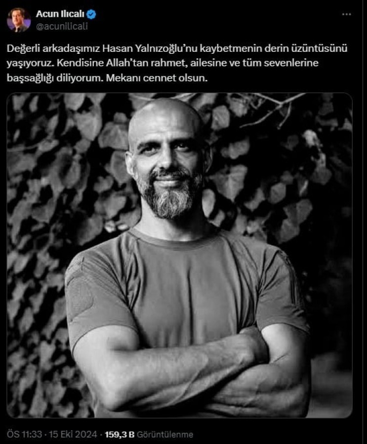 "Değerli arkadaşımız Hasan Yalnızoğlu'nu kaybetmenin derin üzüntüsünü yaşıyoruz. Kendisine Allah'tan rahmet, ailesine ve tüm sevenlerine başsağlığı diliyorum. Mekanı cennet olsun."