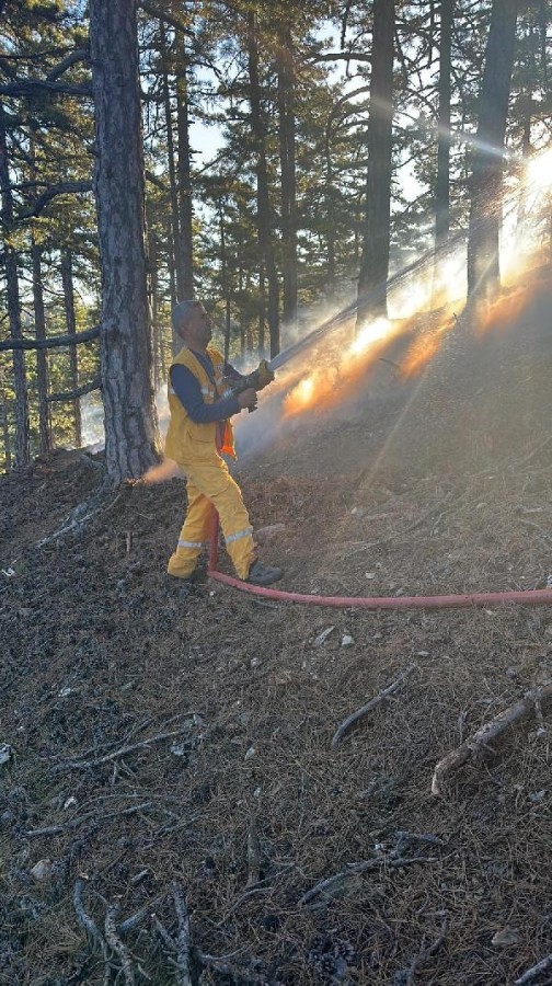 Ekipler, havadan ve karadan müdahaleyle yangını kontrol altına aldı.