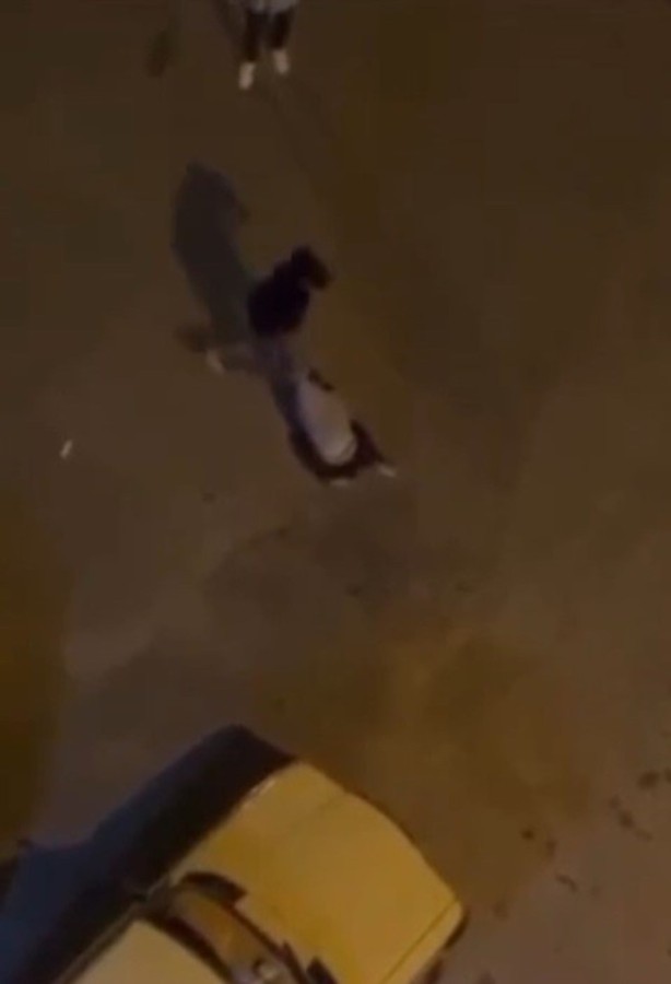Bu sırada gruptan bir kişi, yere yatırdığı şüpheliyi kıyafetinden tutup sürükleyerek ara sokakları gezdirdi.