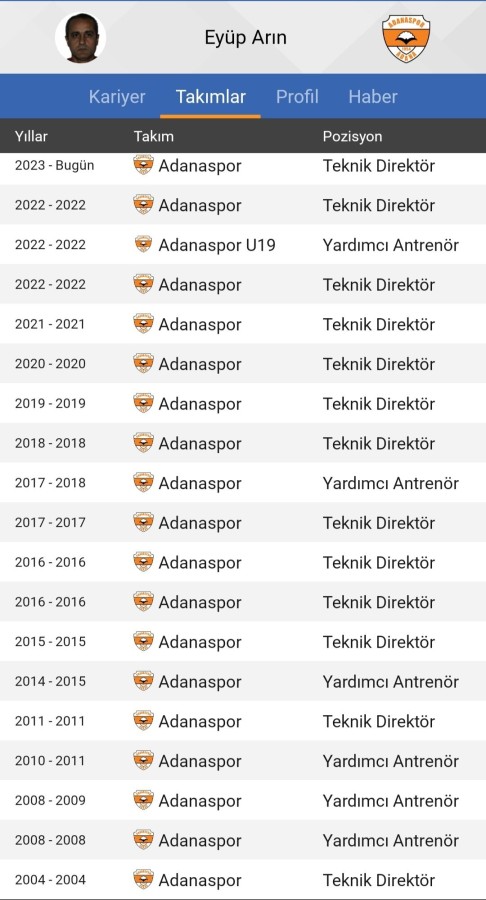 Trendyol 1. Lig' ekiplerinden Adanaspor, Özhan Pulat ile sözleşmeyi feshetmesinin ardından, teknik direktörlük görevine Eyüp Arın'ı getirdi. Arın, turuncu-beyazlı ekipte 13. kez teknik direktör olarak görev yapacak.
