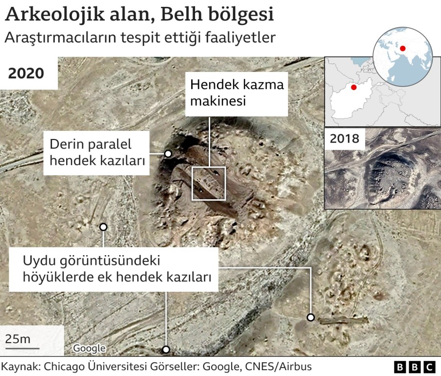 ABD'deki Chicago Üniversitesiden araştırmacılar Afganistan'da onlarca arkeolojik alanın buldozerlerle yıkılarak sistematik bir şekilde yağmaya açıldığını aktardı.