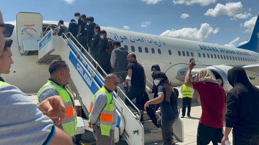 Afgan göçmenler, sınır dışı işlemlerinin ardından uçakla ülkelerine yollandı.