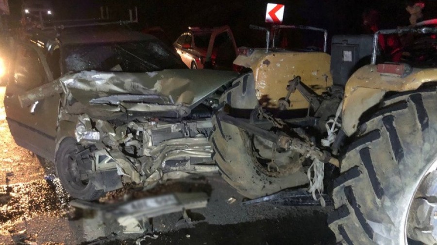 Kazada, otomobil sürücüsü ve araçtaki Meryem O. ile traktör sürücüsü yaralandı.