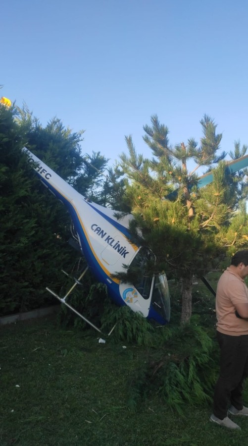 Alınan bilgiye göre, N.C. ile oğlu B.C, komutasındaki bir helikopter, Dörtyol Mahallesi'ndeki bir otelin bahçesine indiği esnada ağaçlara çarptı.