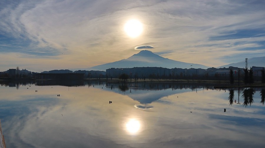 Türkiye'nin en yüksek noktası Ağrı Dağı'nın üzerinde mercek bulutu oluştu.