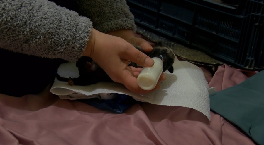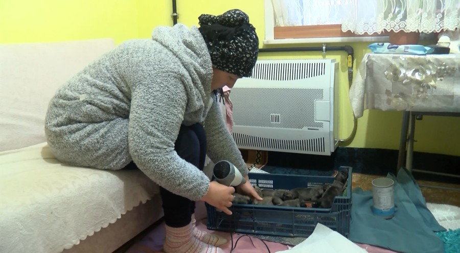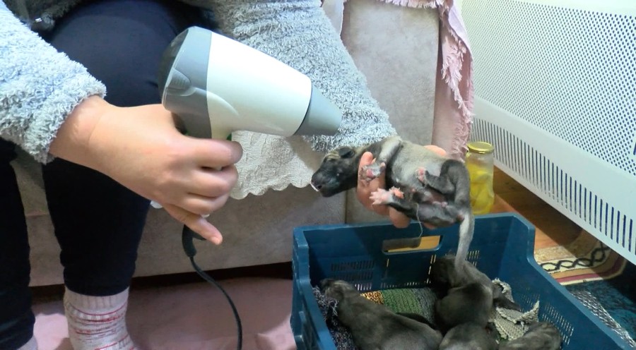 Yavruları köpek maması ile besleyen Karlangıç, saç kurutma makinesi ile köpekleri ısıttı.