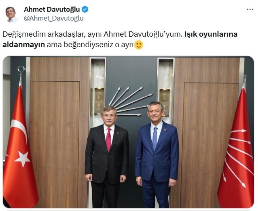 Davutoğlu, yeni imajının dikkat çektiği ve saçlarını sayıya boyattığı paylaşımlarına, "Değişmedim arkadaşlar, aynı Ahmet Davutoğlu'yum. Işık oyunlarına aldanmayın ama beğendiyseniz o ayrı" sözleriyle yanıt verdi.