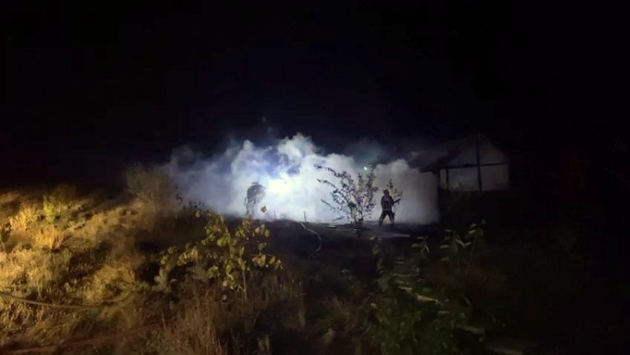 Hüseyinli Mahallesi'nde sulama göleti civarındaki C.G'ye ait ahşap yayla evinde kimsenin olmadığı sırada bilinmeyen nedenle yangın çıktı.