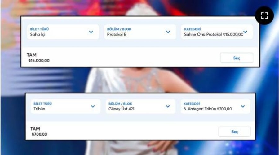 Bilet fiyatları da şimdiden belli oldu ve satışa çıktı. En ucuz bilet 700 TL'den en pahalısı da 15 bin TL'den satışa çıkarıldı.