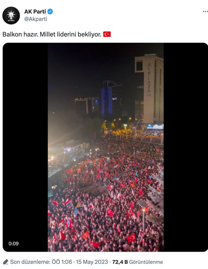 Öte yandan AK Parti'nin Twitter hesabından yapılan paylaşımda, "Balkon hazır. Millet liderini bekliyor" ifadeleri kullanıldı.