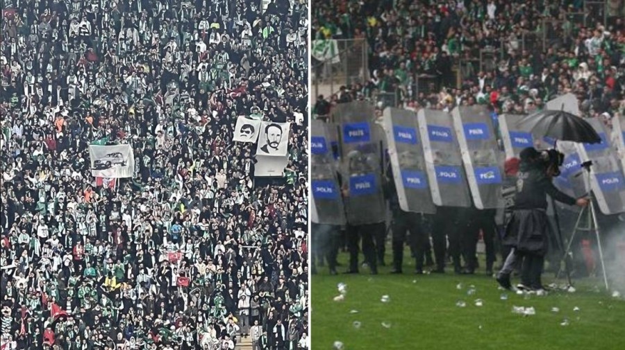 Bursa'da oynanan futbol maçında tribünlerde açılan sporun ruhuna aykırı görseller kabul edilemez.