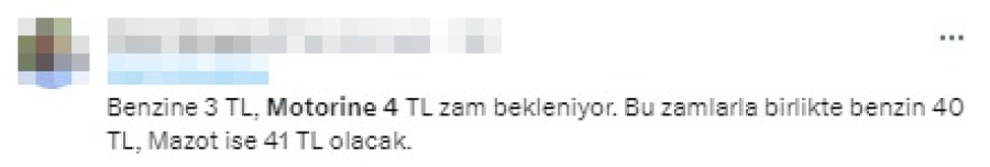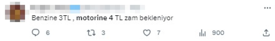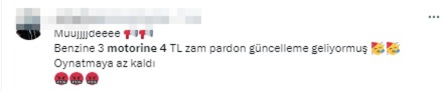 Konu sosyal medyada da gündem olurken, birçok kullanıcı "Bu hafta benzine 3, motorine ise 4 TL zam geliyor" paylaşımları yaptı. Ancak bu konuda sektör kaynaklarından resmi bir açıklama gelmedi.