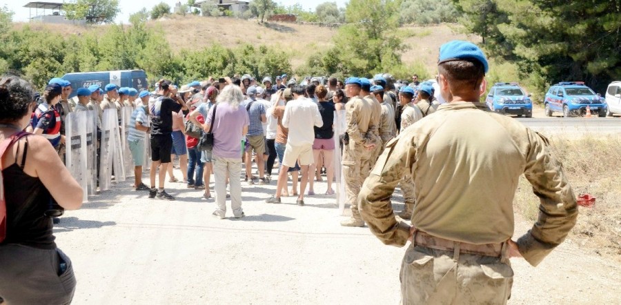 12 gündür, ağaçları kestirmemek için direnen köylüler ve çevreciler ile jandarma arasında, bugün öğle saatlerinde bu kez kullanma suyu gerginliği yaşandı.