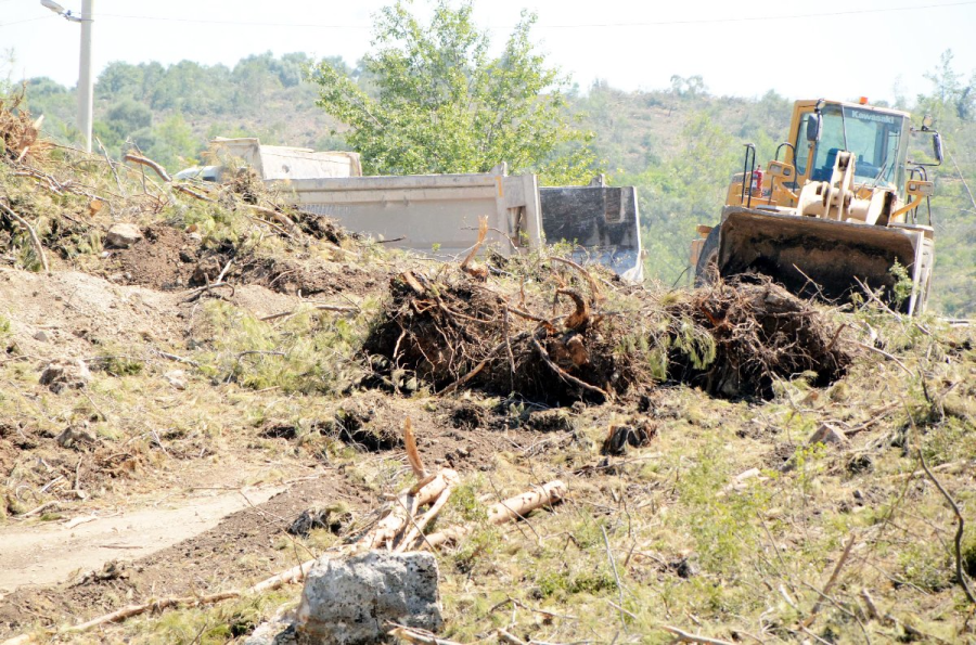 Öte yandan 78 hektarlık alandan kesilen binlerce ağacın köklerinin topraktan çıkarılması için iş makineleri ile başlatılan çalışmalar sürüyor.