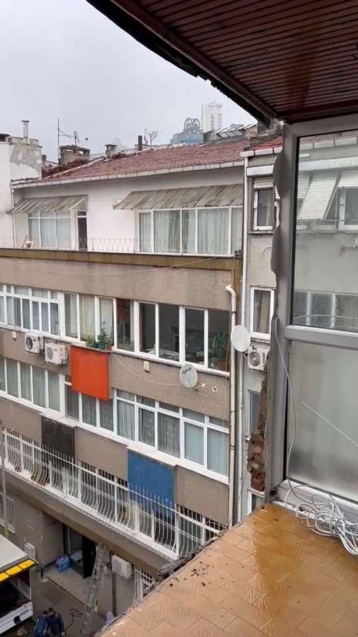 Büyük bir gürültüyle dağılan duvar yere saçılırken, o esnada evde olan Gökpınar'ın arkadaşı Çağla Taşdelen adeta şoke oldu.