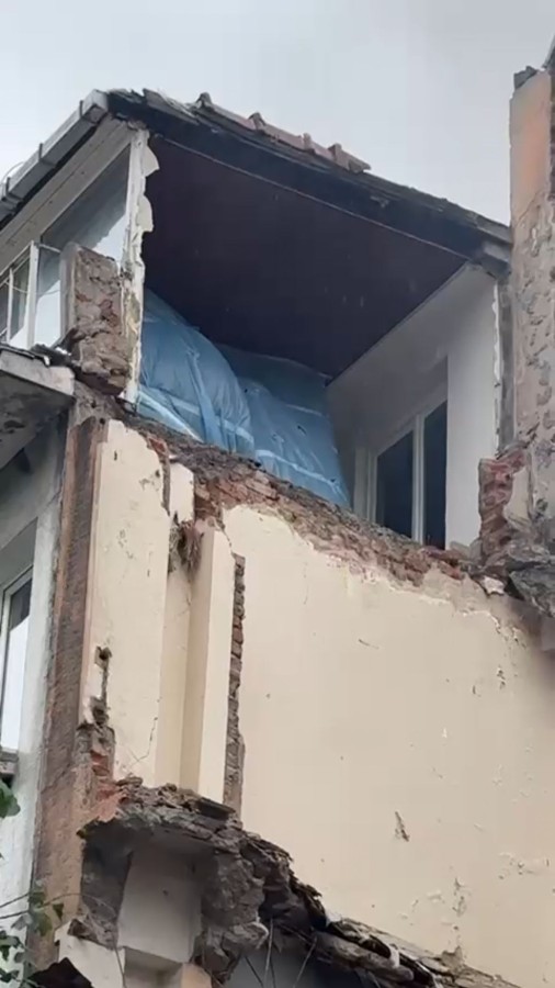 Olayın ardından kadın yaşananları kayda alırken, duvarsız evden sokağı gördüğü anlar da kameralara yansıdı.
