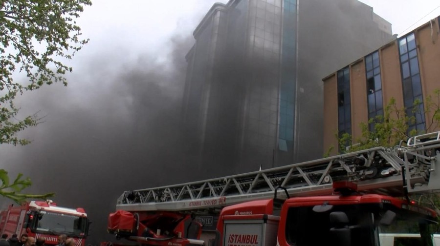 Yoğun dumanlar nedeniyle çevredeki iş yerleri de boşaltıldı. İtfaiye ekipleri yangını söndürmek için çalışma yürütüyor.