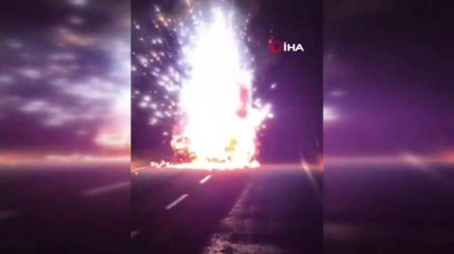 Kaza sonrası pikap sürücüsünün olay yerinden uzaklaştığı iddia edilirken, çarpışmanın etkisiyle otomobilde yangın çıktı. Alevler kısa sürede büyürken, araçta art arda patlamalar meydana geldi.