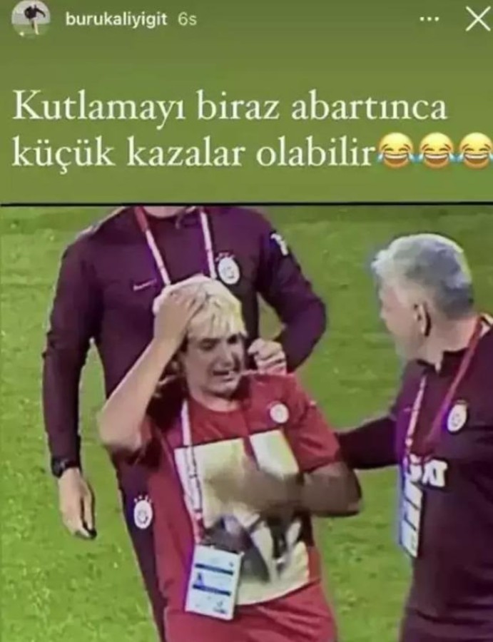 Okan Buruk'un oğlu paylaşımında "Kutlamayı biraz abartınca" notunu düştü. Galatasaray'da Davinson'un kutlama esnasında Ali Yiğit'in saçlarını tuttuğu öğrenildi.