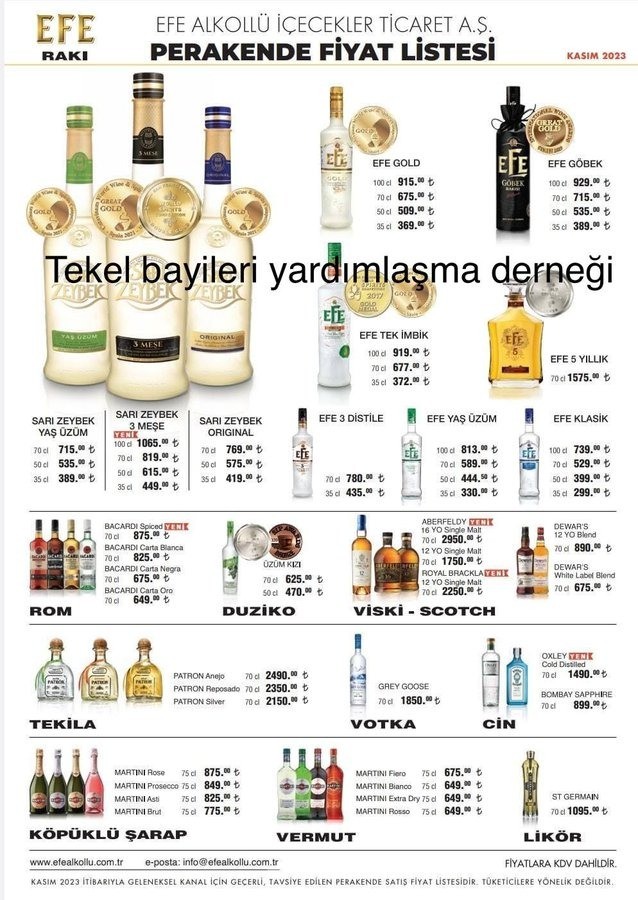 Sigara zammının ardından bir zam da alkollü içkilere geldi. Zammı Tekel Bayileri Yardımlaşma Derneği (TBYD) Başkanı Erol Dündar sosyal medya hesabından duyurdu.