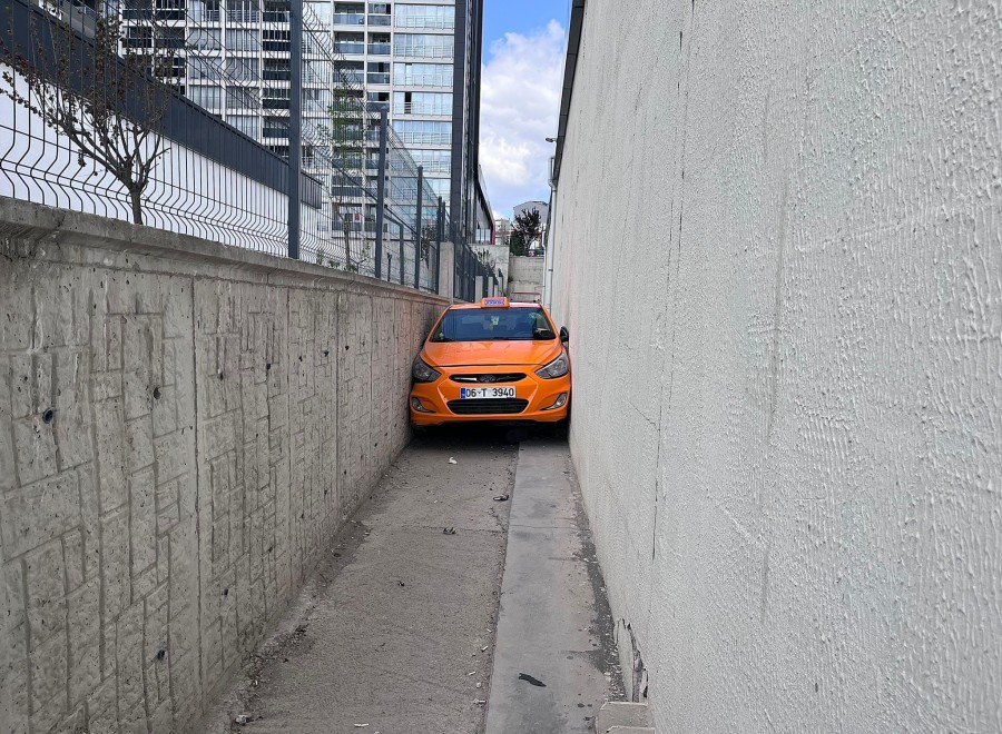 Ankara'nın Etimesgut ilçesinde, alkollü olduğu için polisten kaçan taksi şoförü Y.K.'nın aracı iki duvar arasına sıkıştı. Sürücü Y.K., polisler tarafından aracın yan camından dışarı çıkarılıp yakalandı.