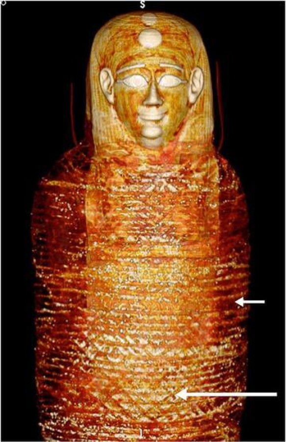 Euronews Türkçe'nin haberine göre, Araştırmada, Mısır'ın güneyindeki Nag el-Hassay'da MÖ 332'den MÖ 30'a kadar kullanılan bir mezarlıkta 1916 yılında keşfedilen bir mumya kullanıldı. Mumya, dönemin geleneklerine uygun olarak ideal yüz hatlarına sahip altın bir maske takan ve boyundan ayaklara kadar tamamen ketenle sarılı halde bugüne kadar Kahire'deki Mısır Müzesi'nin bodrum katında saklanıyordu. Kahire Üniversitesi Radyoloji Bölümü'nden bir ekibin yürüttüğü araştırmada bilgisayarlı tomografi taramasıyla tam sarılı haldeki mumyanın bütün katmanları birer birer dijital olarak açıldı.