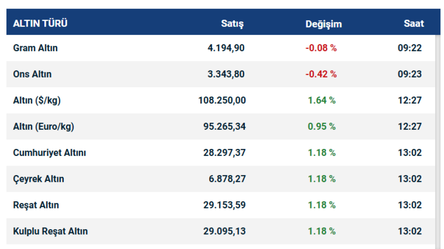 Gram altın güne 4198 liradan başladı. Gün içinde en düşük 4178 lira, en yüksek de 4210 lira seviyesi görüldü. Şu sıralar 4199 liradan alıcı buluyor.